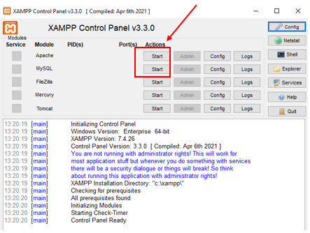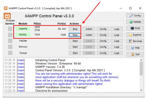 2. Install XAMPP, setelah di install maka jalankan Apache dan MySQL