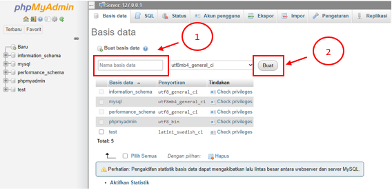 Inputkan nama database yang ingin dibuat. Kemudian klik Buat.
