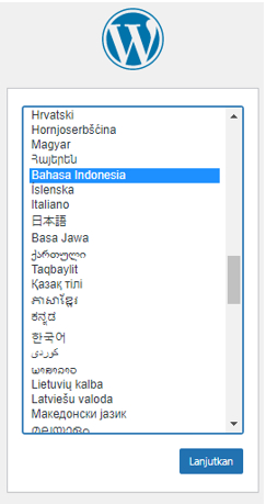 7. Buka web browser, kemudian ketikkan localhost/wordpress (jika telah menganti nama foldernya, panggil sesuai nama folder yang dirubah)/. Kita akan masuk ke halaman pemasangan WordPress di Localhost.