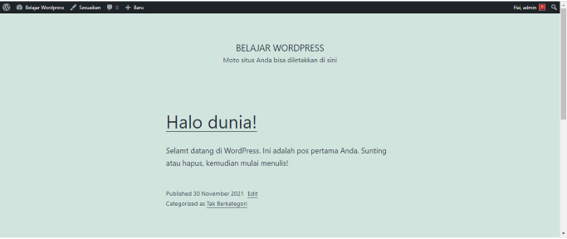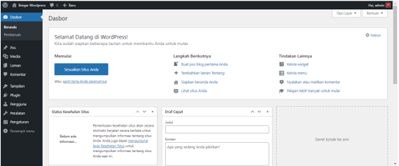 Ini merupakan tampilan laman admin WordPress, tempat untuk mengatur tampilan WordPress